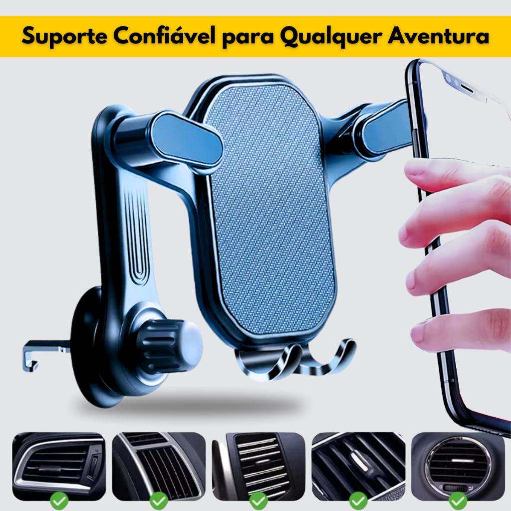 Suporte de Celular Veicular Universal Saída de ar Rotação 360° Ajustável Seguro e Prático