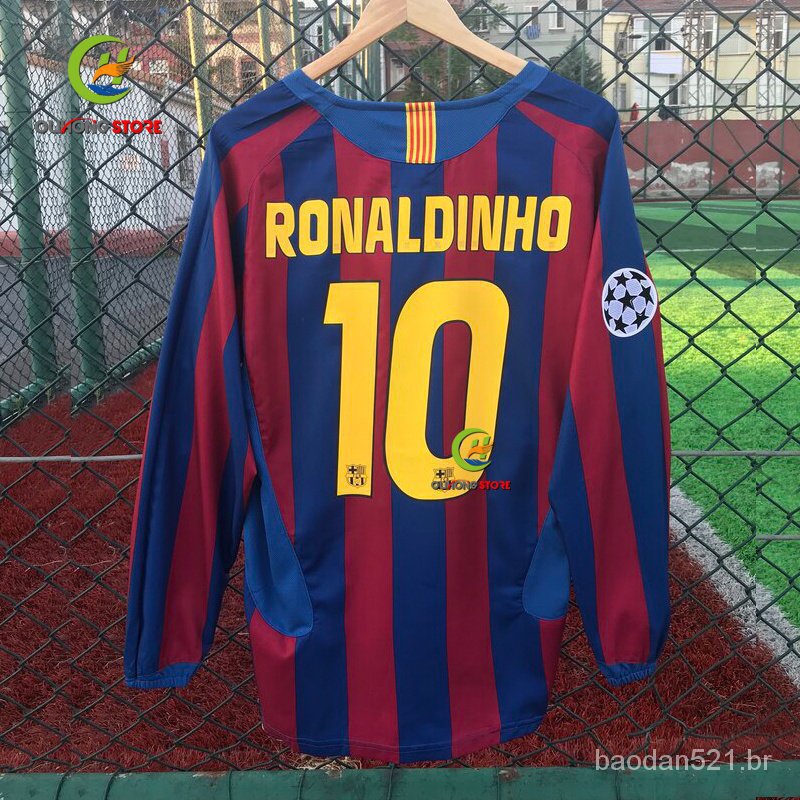 Camisa Do Tempo 05/06 Camiset Barcelona Retro Home Manga Longa RONALDINHO # 30 Fardas De Voleibol 2005/2006 BS Thai 1 : 1