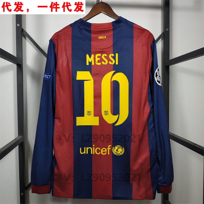 Manga Longa Retro No . 1415 Home Barcelona Camisa Do Campeonato 10 Messi 9 Suales 1111 Equipe De Futebol Uniforme Nemar Número Personalizado Jersey Thai Ver
