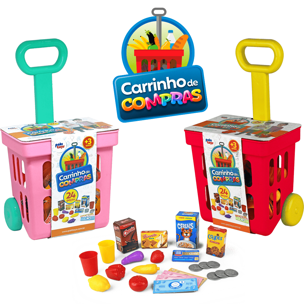 Carrinho de Compras Regulável C/ 24 Acessórios e S/Acessorios Brinquedo Infantil
