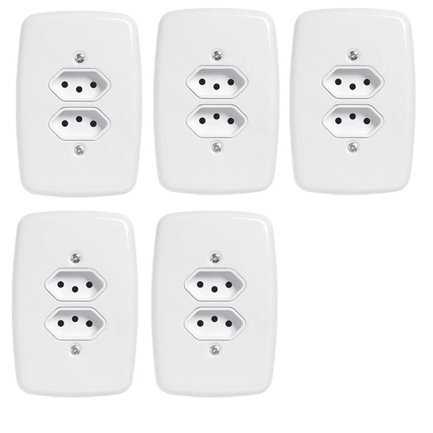 kit Tomada dupla 10a 20a Completa Branco 05 Unidades Pluzie Ideale 4x2
