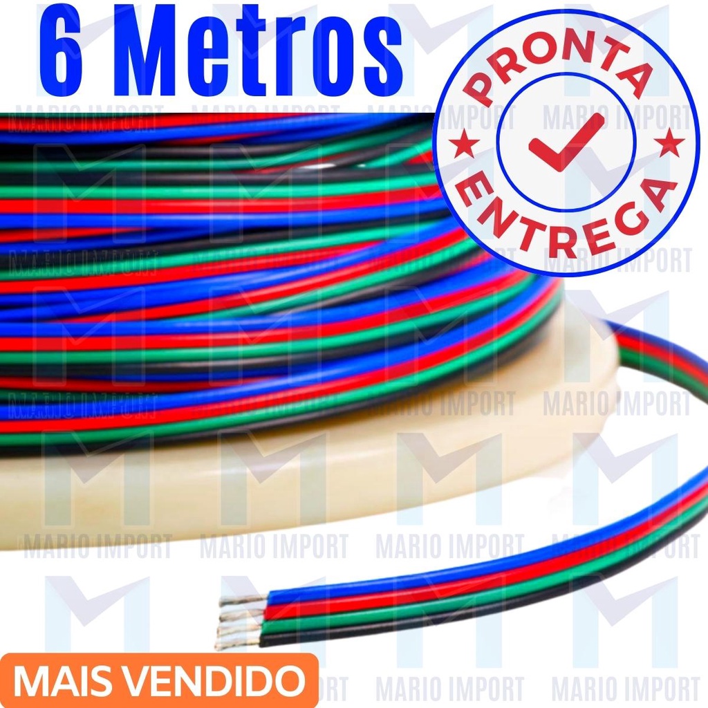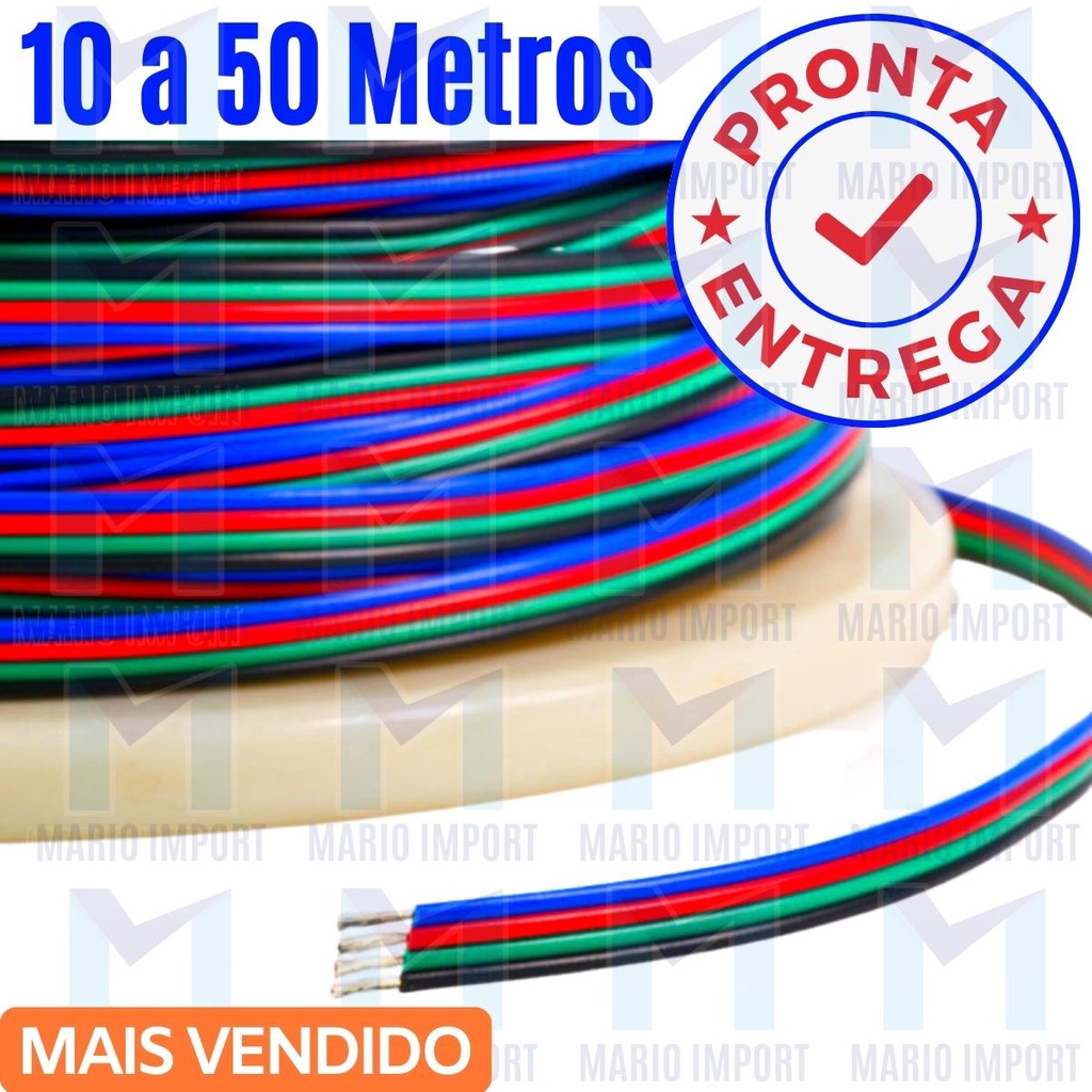 Fio Para Fita Led RGB 4 Vias 5050 3528 - 10 a 50 Metros