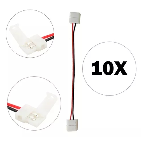 10 Emenda Extensor Conector Com Fio Rápido Simples Fita Led 3528 5050 Cor Unica 2 Vias 10mm Sem solda