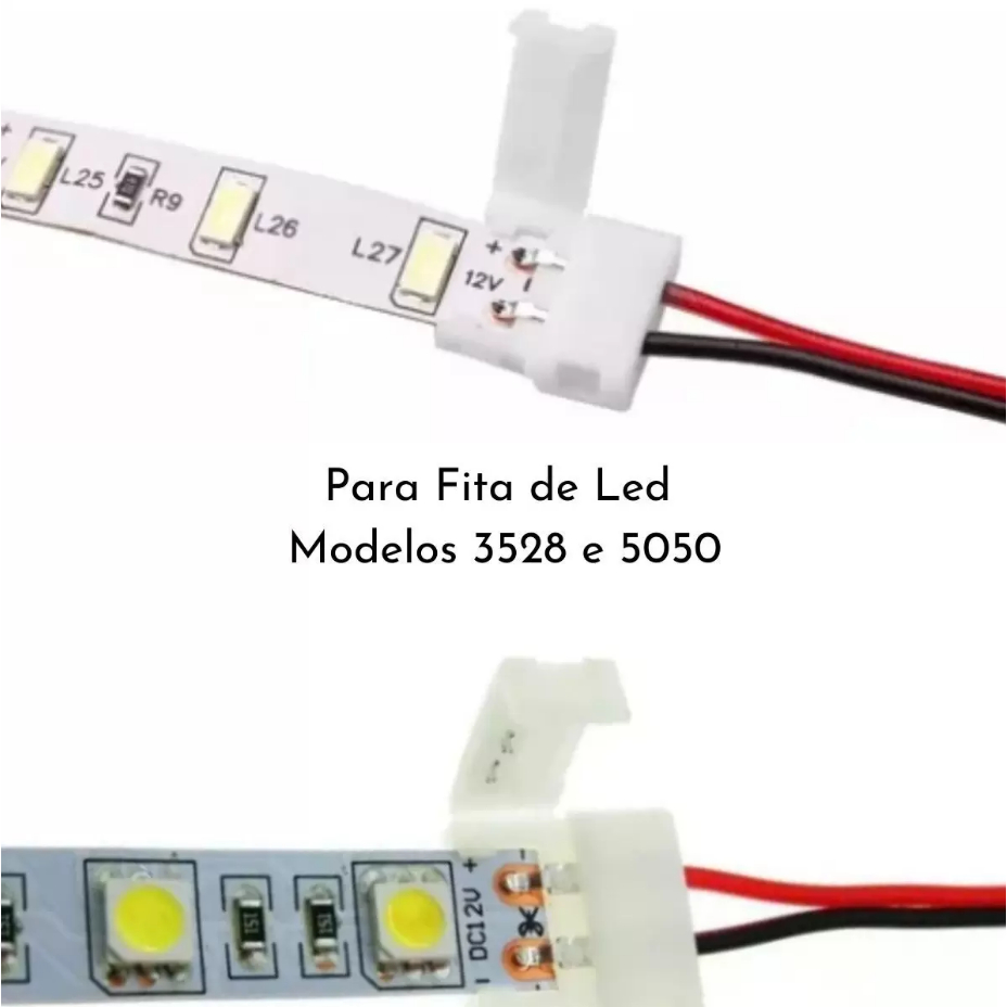 Emenda Extensor Conector Com Fio Rápido Simples Fita Led 3528 5050 Cor Unica 2 Vias 10mm Sem solda