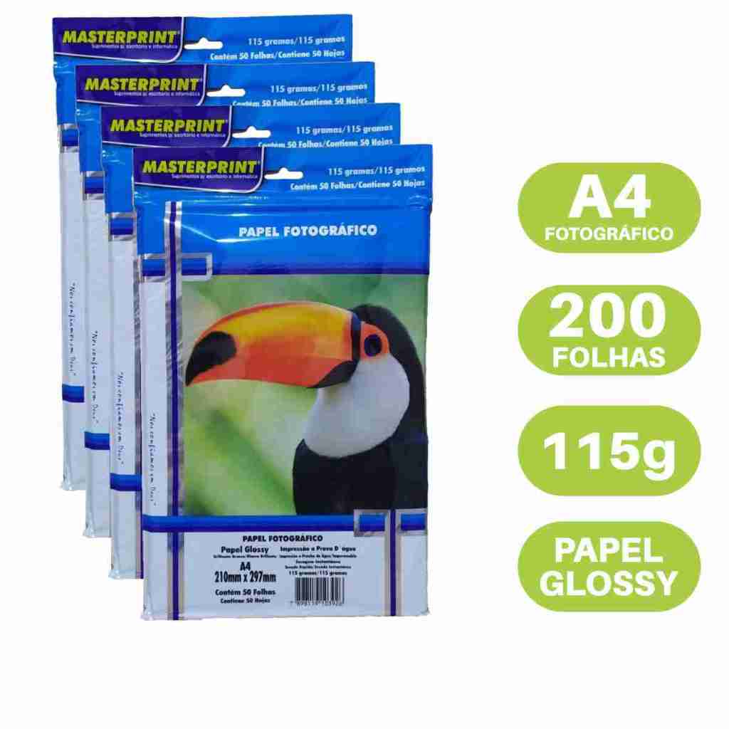 Papel Fotográfico Glossy 115gr Kit 200 Folhas A4 Masterprint