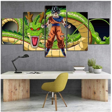 Quadros Decorativos mosaicos 5 peças Dragon ball z goku e shenlong para sua casa, quarto ou sala Visu = 94