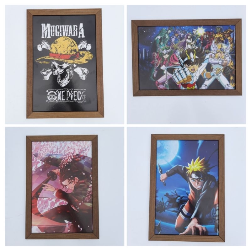 Kit 5 Quadros Decorativos Mix de Animes 9,5x14,5 Placa Decorativa Já Acompanha Dupla Face Naruto One Piece Dragon Ball HunterxHunter Demon slayer