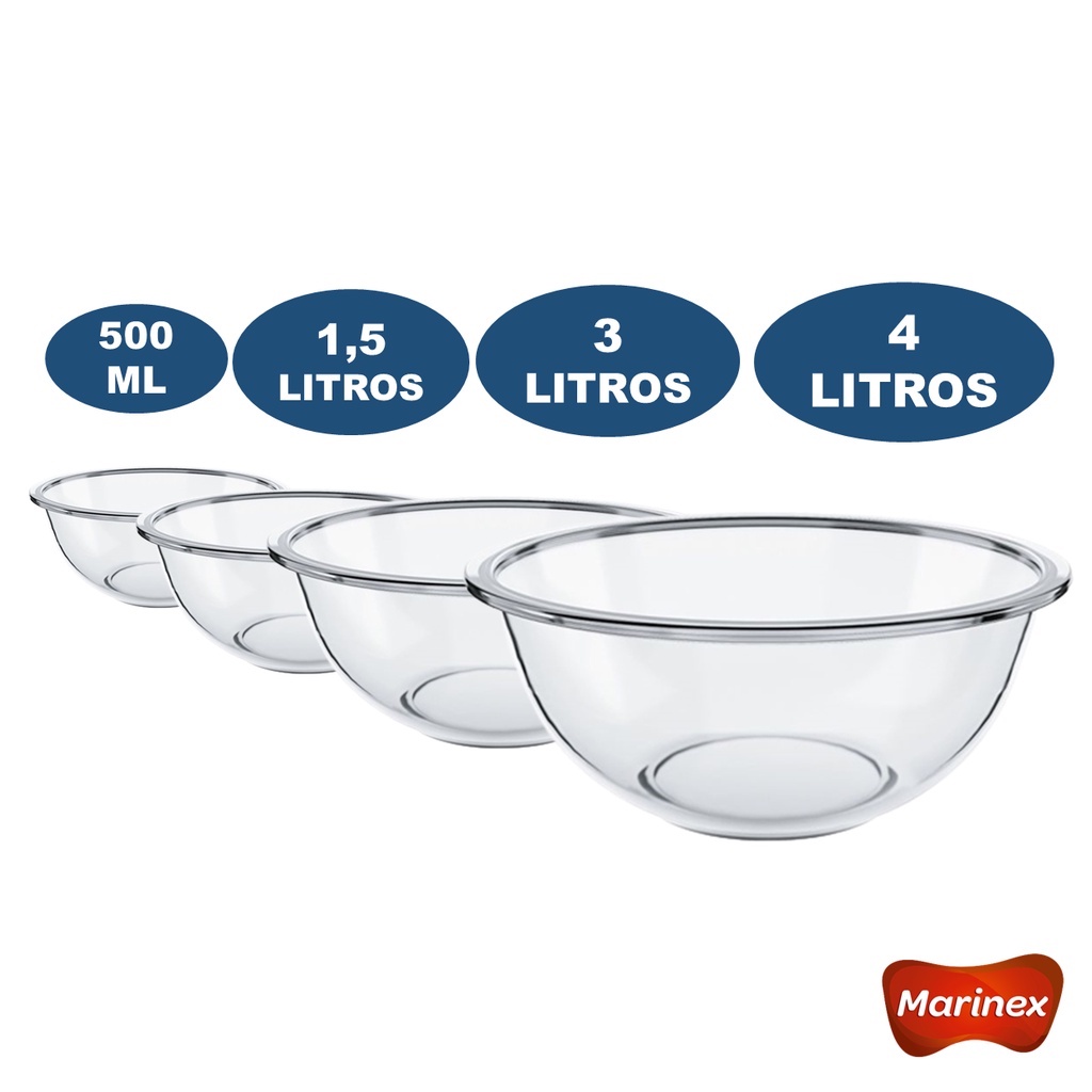 Conjunto de Tigelas Marinex 4 Peças Vidro Plus