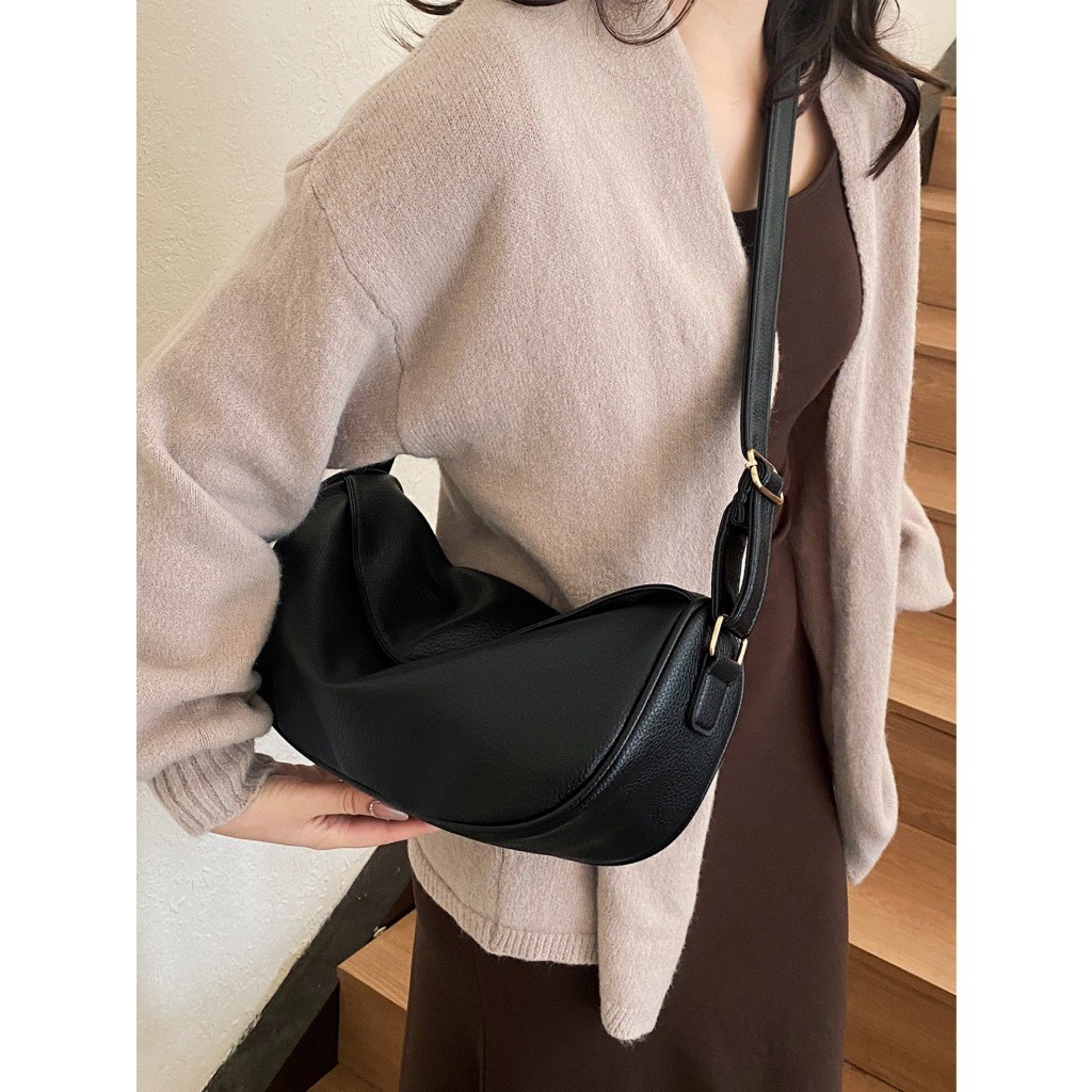 Bolsa Feminina de Um Ombro Ou Alça Cruzada e Alça de Mão, Com Superfície de PU Macia, Na Cor Preta
