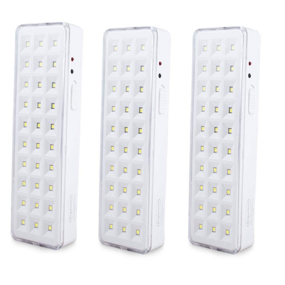 Kit 3 Luminaria Emergencia Lampada 30 Leds Recarregavel Bivolt Segurimax