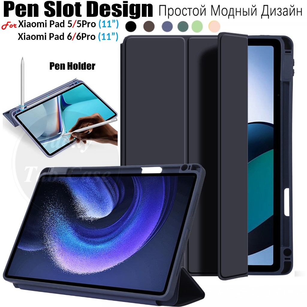 Pen Slot Estilo Design Capa Para Xiaomi Pad 5 6 Pro 11.0 " MiPad Pad5 5Pro Pad6 6Pro 11 Polegadas 5G De Alta Qualidade Suporte De Couro De PU Tampa Flip