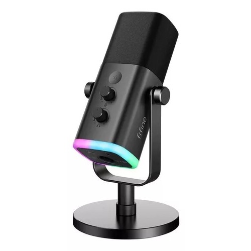 Microfone Fifine AM8 Dinâmico Xlr/USB Para Podcasts, Transmissão De Jogos, RGB, Conector P2 , Suporte De Mesa, Preto