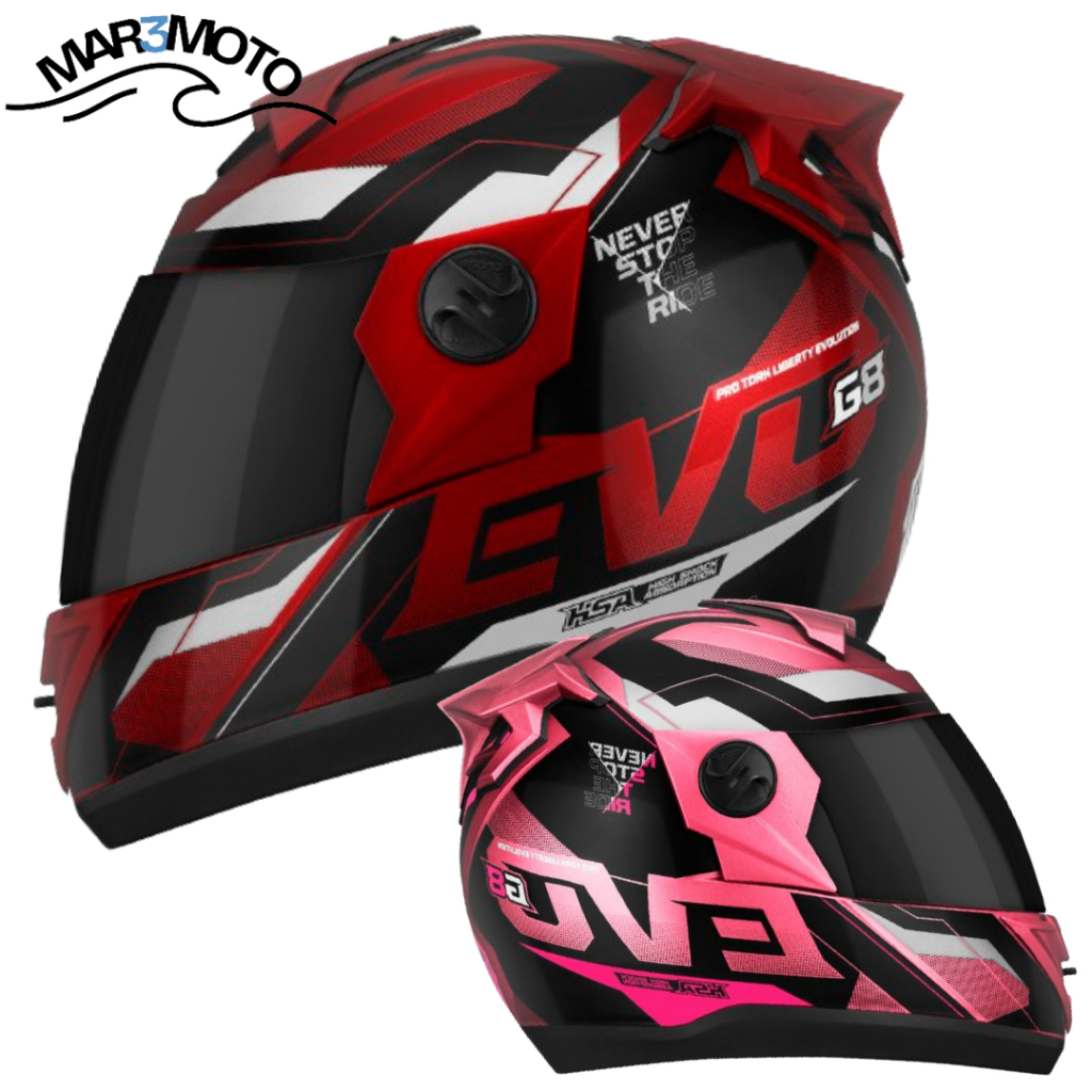 Capacete Fechado Evolution G8 com Viseira Fume Envio em 24 horas Para Motoqueiro Moto Boy Motociclista Masculino Feminino Tamanho 62 60 58 e 56 Lançamento Oferta Promoção Vermelho Branco Pink Rosa Azul Verde Turquesa Preto Brilhante