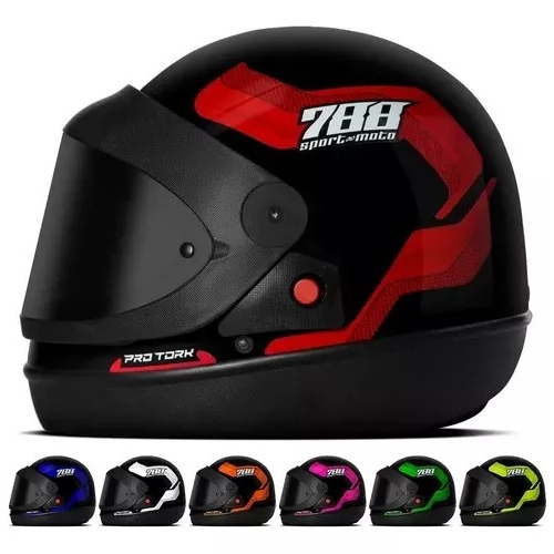 Capacete Moto Fechado Integral Sport Moto 788 Tipo San Marino Masculino e Feminino Todas as Cores Pro Tork