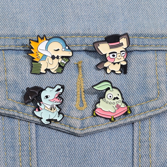 Desenho Animado Anime Pokémon Série Broche Fofo Cavalheiro Pikachu Pequeno Dinossauro Metal Badge Acessórios Vestuário Pin Jewelry Gift