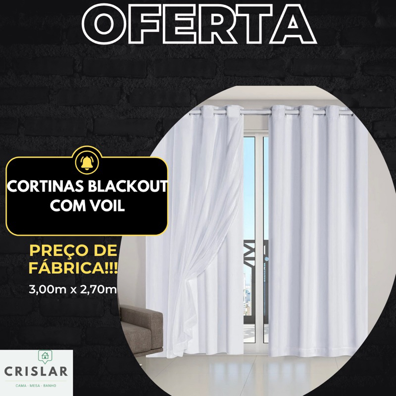 Cortina Blackout Pvc com Voil 100% Corta Luz 2,80m x 2,70m.