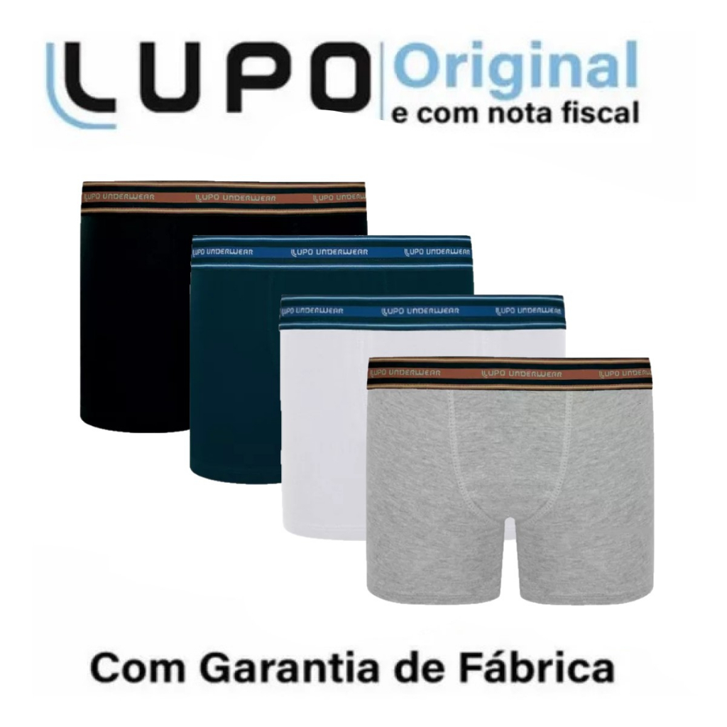 Kit C/4 Cuecas Boxer Lupo Algodão Masculina Adulto Modelo Box - Original