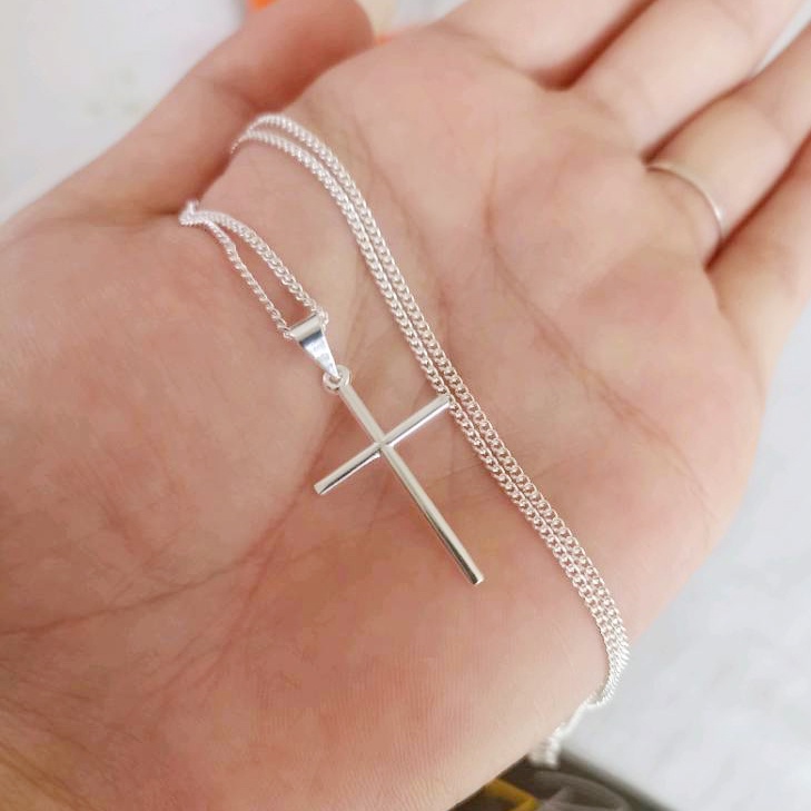 Colar corrente Veneziana 0,7 mm com pingente de cruz palito banho de PRATA 925 +++