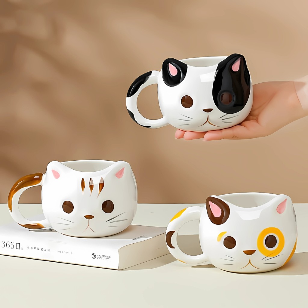 Caneca Xícara De Cerâmica Em Formato cabeça De Gato Fofo 430ml