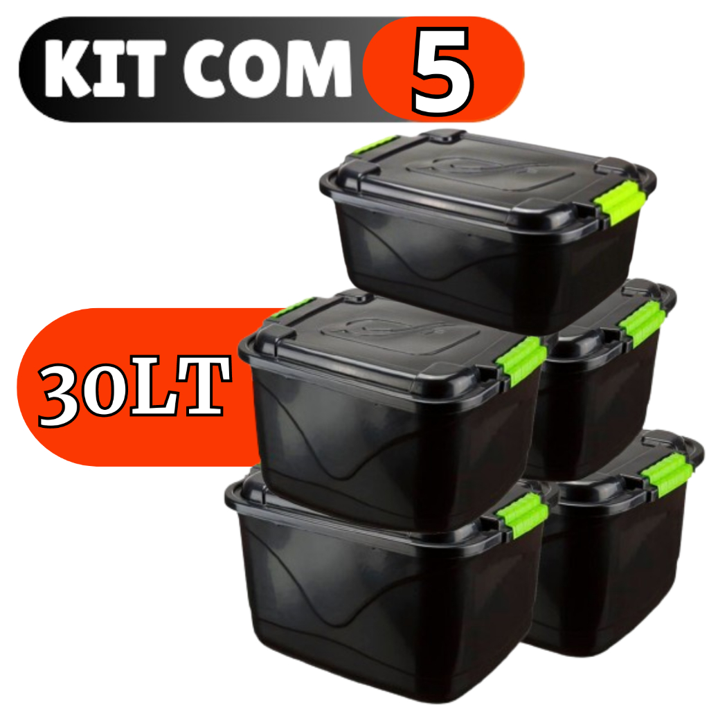 Kit 5 Caixas Organizadoras 30l Grande C/Tampa e Trava Organizador Multiuso