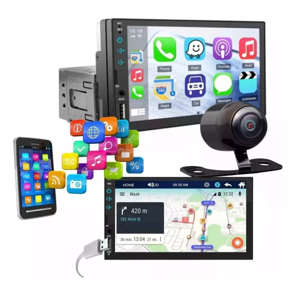 Central Multimídia MP5 1 Din/ 2 Din Tela 7” Touch Bluetooth USB Espelhamento Android/iOS + Câmera Ré