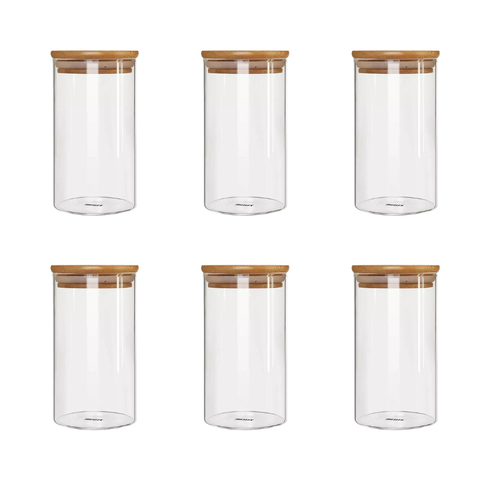 Kit 6 Potes Frasco de Vidro Com Tampa de Bambu Para Condimentos Temperos e Doces 200ml—KL2402001