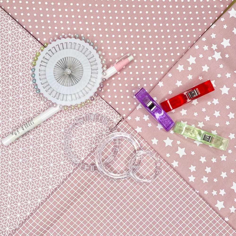 Tecido Tricoline Estampado Silky Cataguases 100% Algodão 0.5m x 1.50 metro - Composê Geométrico Tons de Rosê - Patchwork / Artesanato
