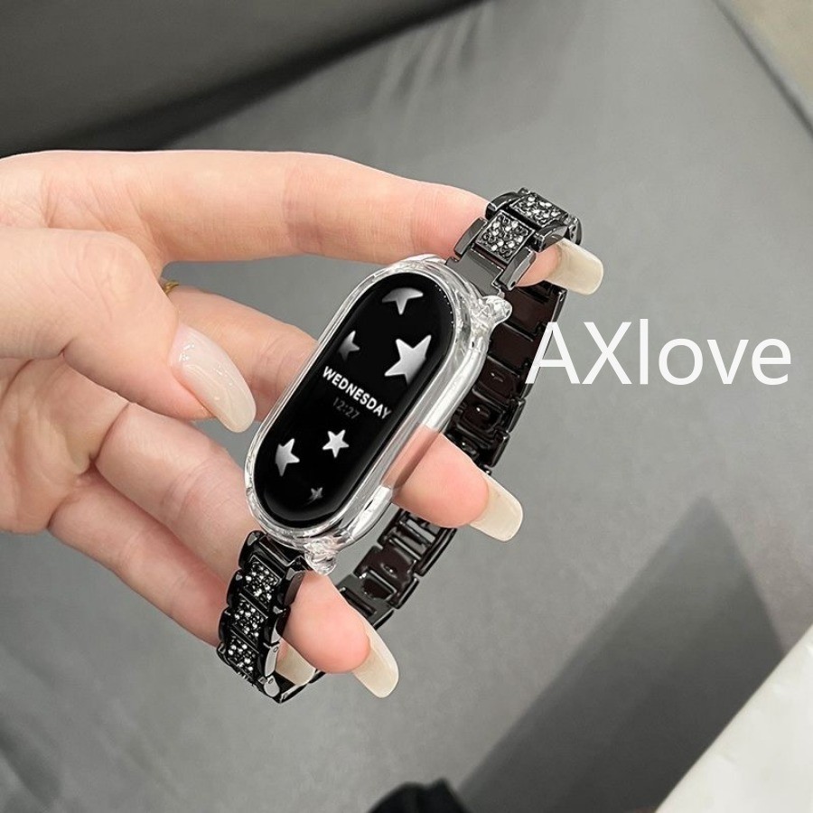 Bracelete De Luxo Em Metal Diamante Para Xiaomi Mi Band 8 7 6 5 4 3 Acessórios De Reposição De Pulseiras De Aço Inoxidável Pulseira Bandas Miband 8 NFC