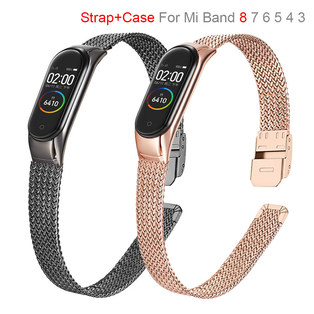 Nova Caixa De Malha Para Xiaomi Mi Band 8 7 Correa De Bracelete De Aço Inoxidável Miband 6 5 4 3