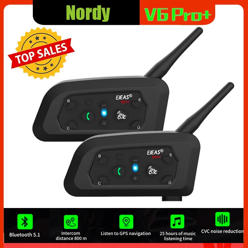 Ejeas V6 Plus Capacete De Motocicleta Interfone Fone De Ouvido Bluetooth 6 driver Comunicação Reprodutor De Música Plus