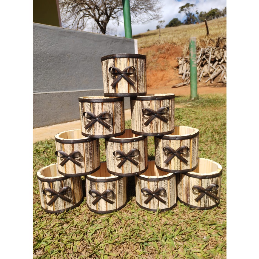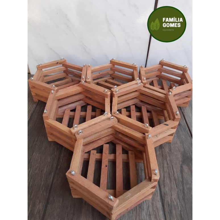 Cachepot/cachepô Madeira Modelo Sextavado 16cm Kit Com 4 Unidades.