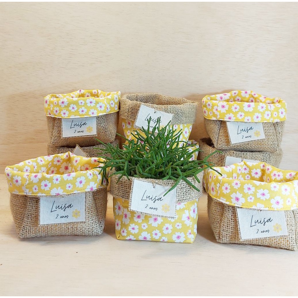 Kit 10 Cachepô Flores - Pequeno Pote 11 - Margaridas - Tag Personalizada - Lembrancinha de Aniversário