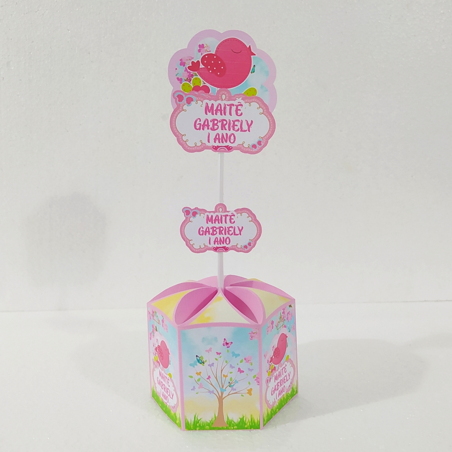 Centro de mesa sextavado Jardim Encantado Pássaros, cachepô, arranjo de mesa personalizado 10/15 unidades