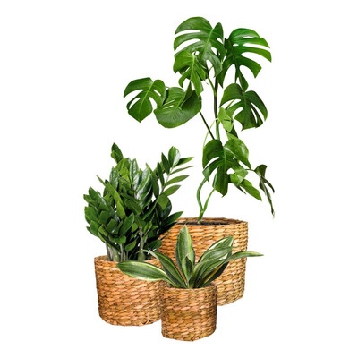 Kit com 3 cachepot de palha de taboa jogo cachepo