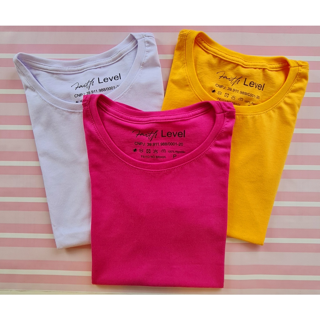 Kit 3 Camiseta Basíca Cores Iguais T-Shirt Feminina 100% Algodão Lisa Promoção Gola Redonda - Promoção Frete Grátis