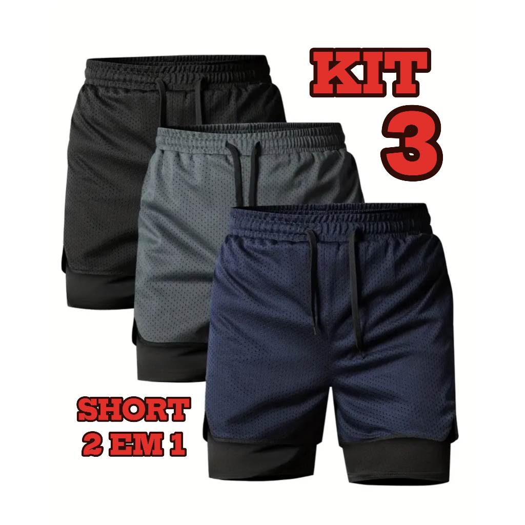 Kit 3 Short 2 em 1 Masculina Academia Esporte Bermuda Treino Masculino