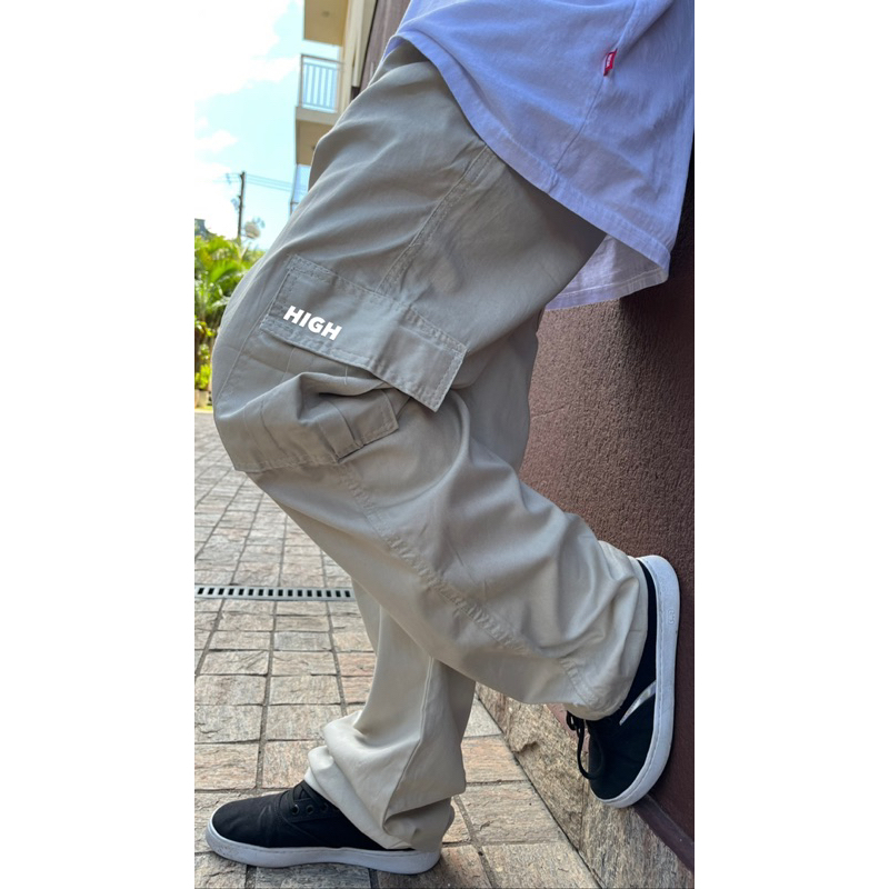 Calça cargo hig sarja 5 bolsos larga street Plus size unissex