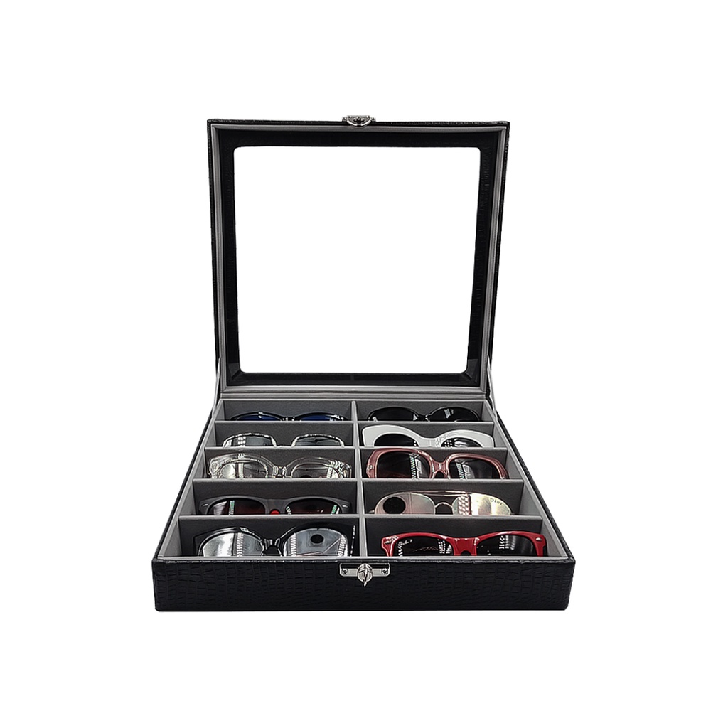 Caixa Estojo Porta Óculos Com 12 Casulos Couro Ecológico Interno Preto