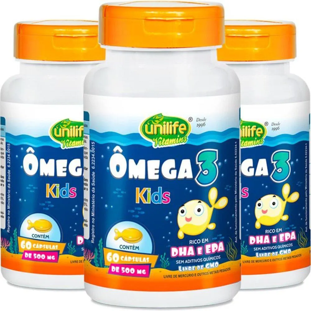 Kit 3 Ômega 3 Kids 500Mg Unilife 60 Cápsulas