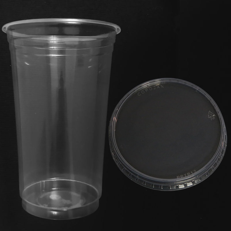 Kit 100 Copos Lisos Descartáveis PP Milk Shake Açaí 700ml C/ Tampa
