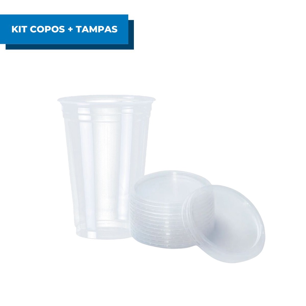 Kit 50 Copos Descartáveis Lisos C/ Tampa Transparente PP Açaí Milk Shake 500ml