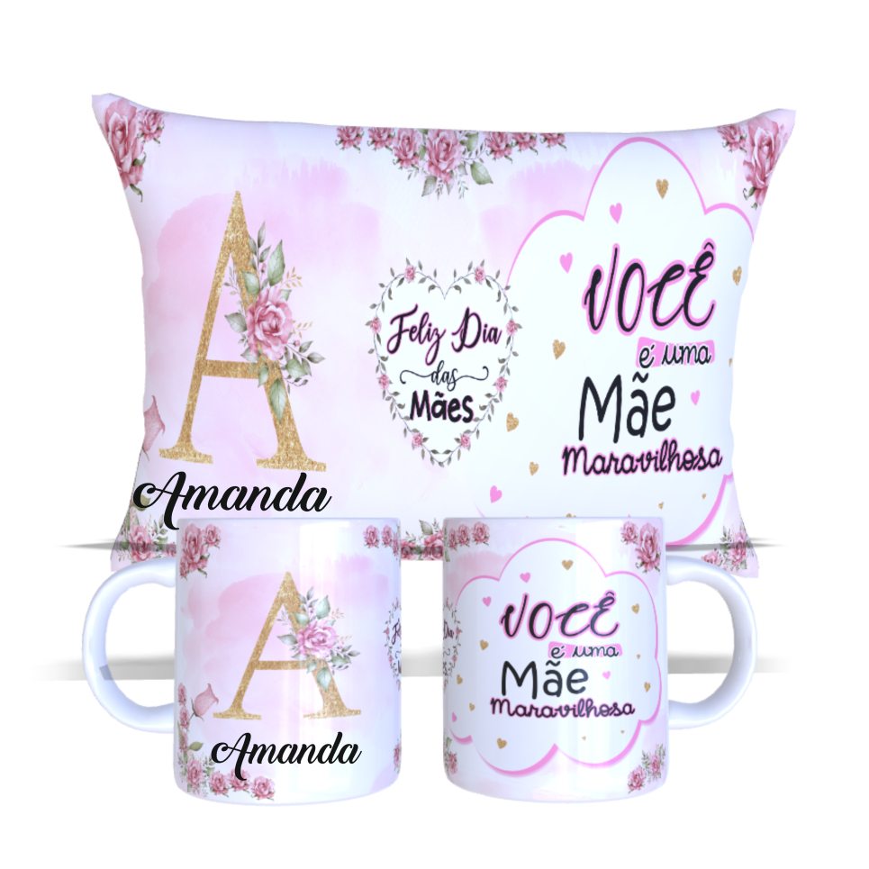 Kit Dia das Mãe (Com Nome) = 1 Almofada + 1 Caneca de Porcelana
