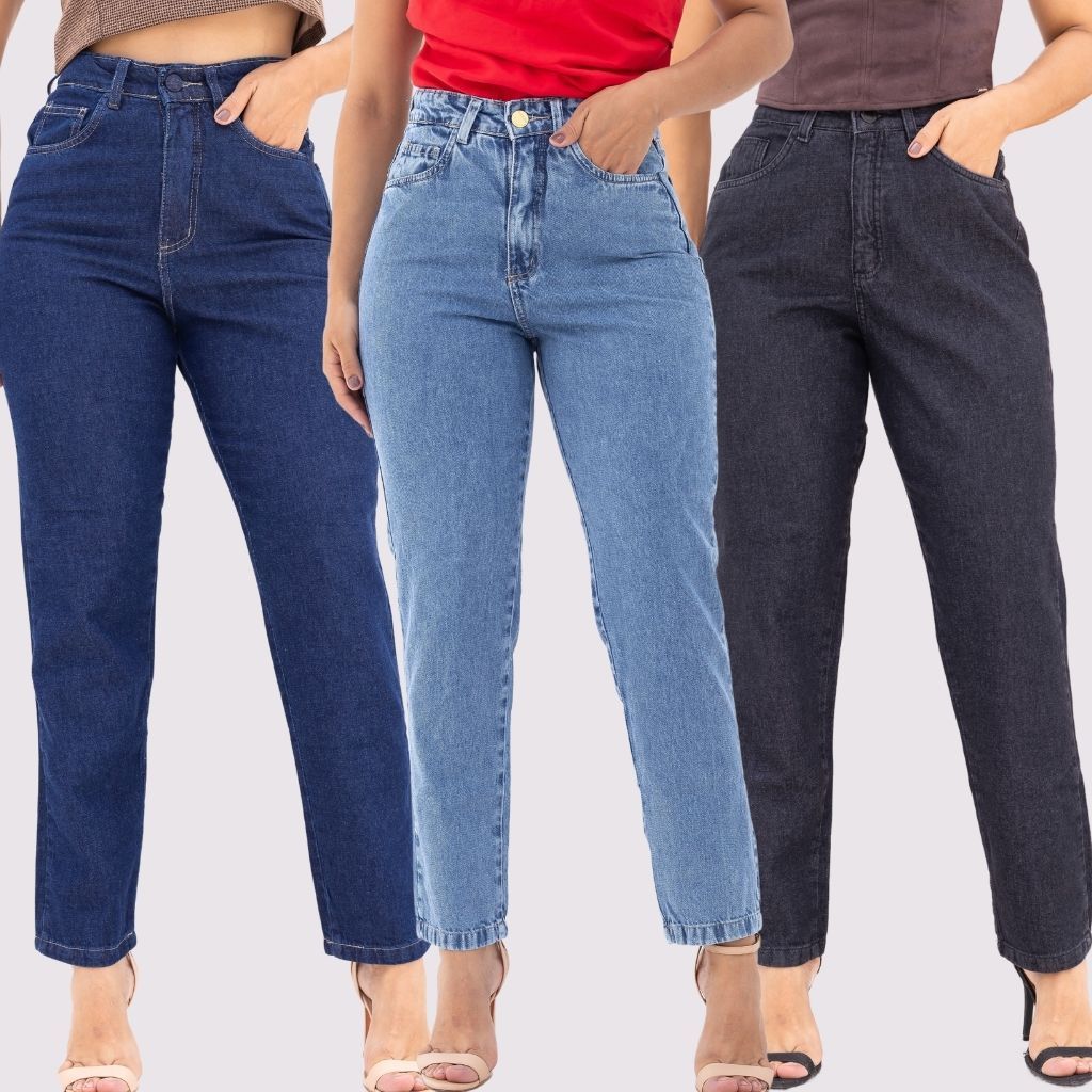 Calça Feminina Mom Jeans Mom Cintura Super Alta Escura e Clara Lisa