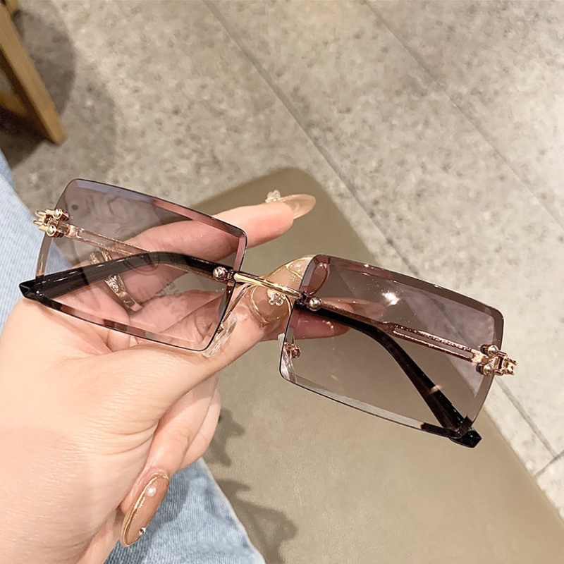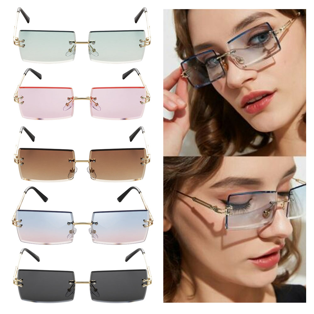 Óculos De Sol Sem Aro Retrô Pequeno Rectângulo Em Forma De Armação Retângulo Moda Proteção UV Para Mulheres Homens Gradient Clear Lens Eyewear
