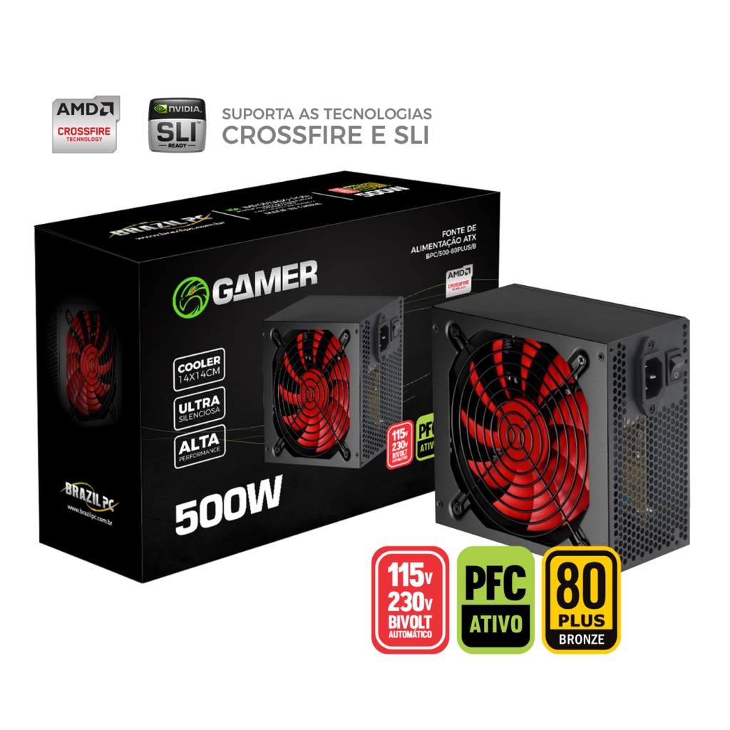 Fonte Gamer Atx 500w 80Plus Bronze + Pfc Ativo 24 Pinos Bivolt Automático