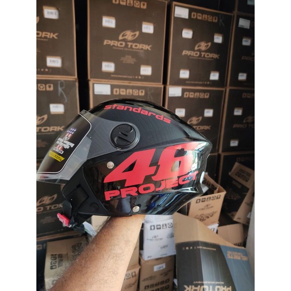 capacete personalizado aberto preto Project 46 vermelho com viseira transparente