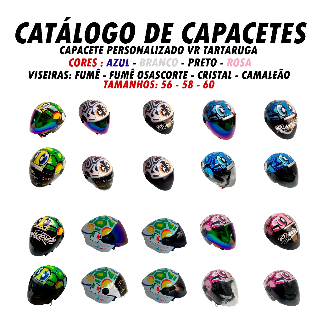 Capacete Aberto Personalizado Várias Cores Tartaruga Viseira Fume Adesivada Camaleao Cristal Vr