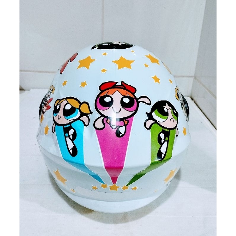 Capacete personalizado adesivado menina protork,super poderosas, branco com viseira transparente sem verniz