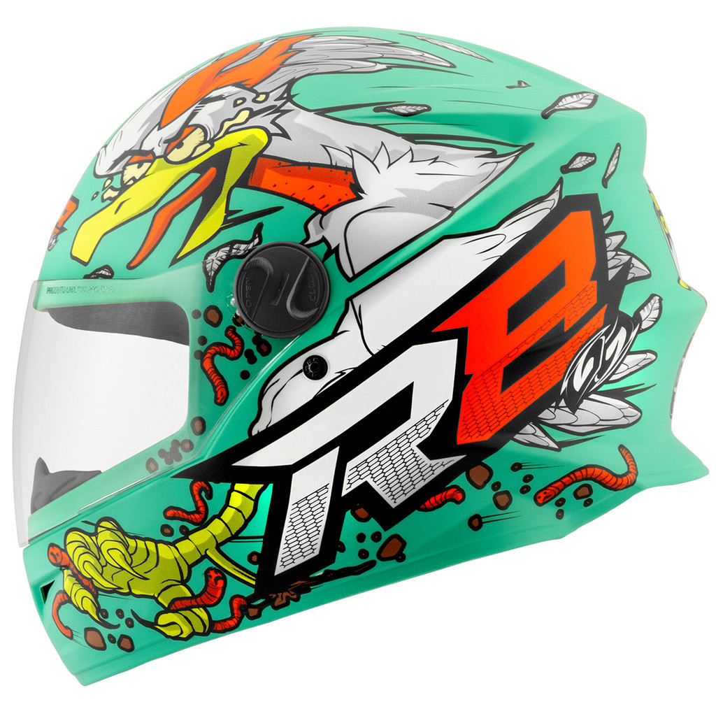 Capacete Moto Integral Esportivo Fechado Pro Tork R8 Rocket Chicken Fosco Viseira Cristal Transparente Masculino Feminino Personalizado Desenho Galinho Frango
