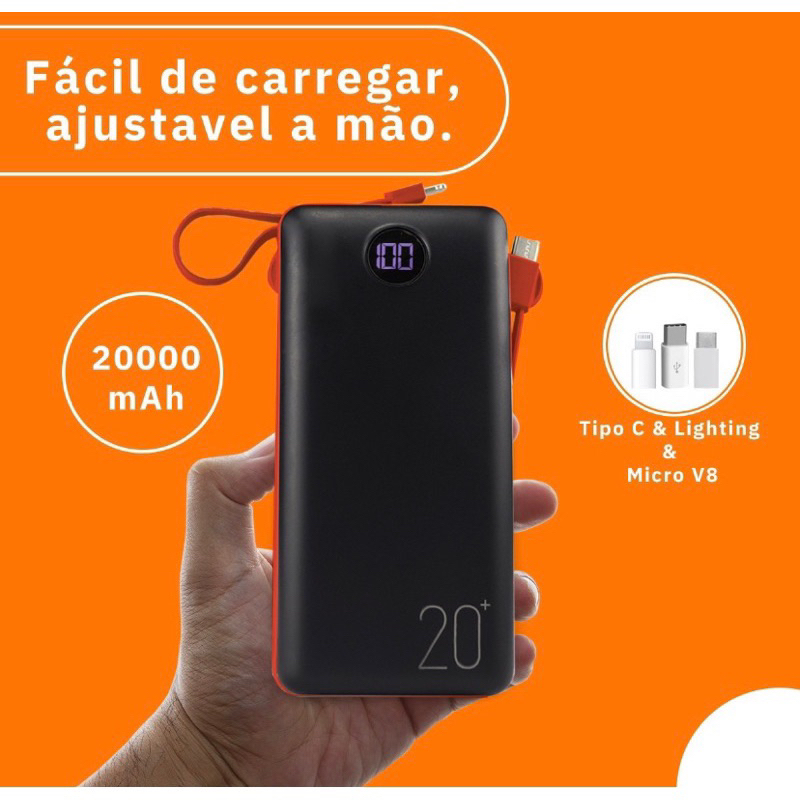 Carregador Portátil Turbo Power Bank 20000mah Com Tela Lcd 100% Original